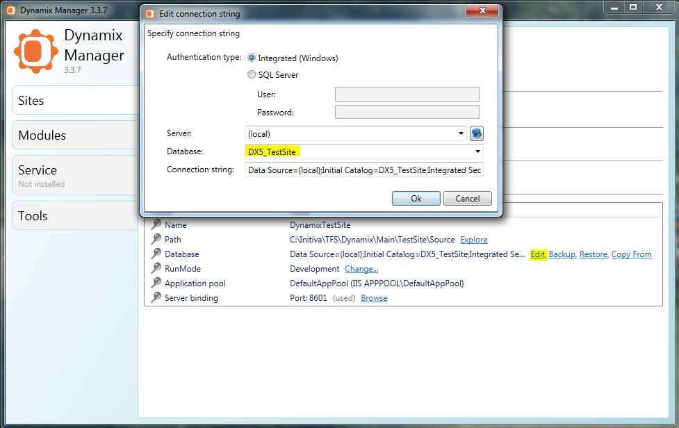 Using Dynamix Manager - Edit Database binding and enter a new database name
