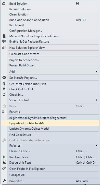 Right click Solution node - click on "Upgrade all .dx files to .dx6"